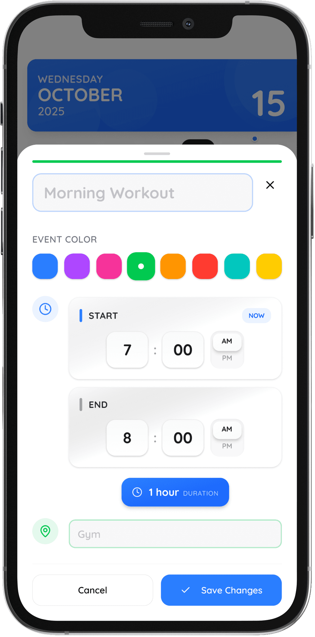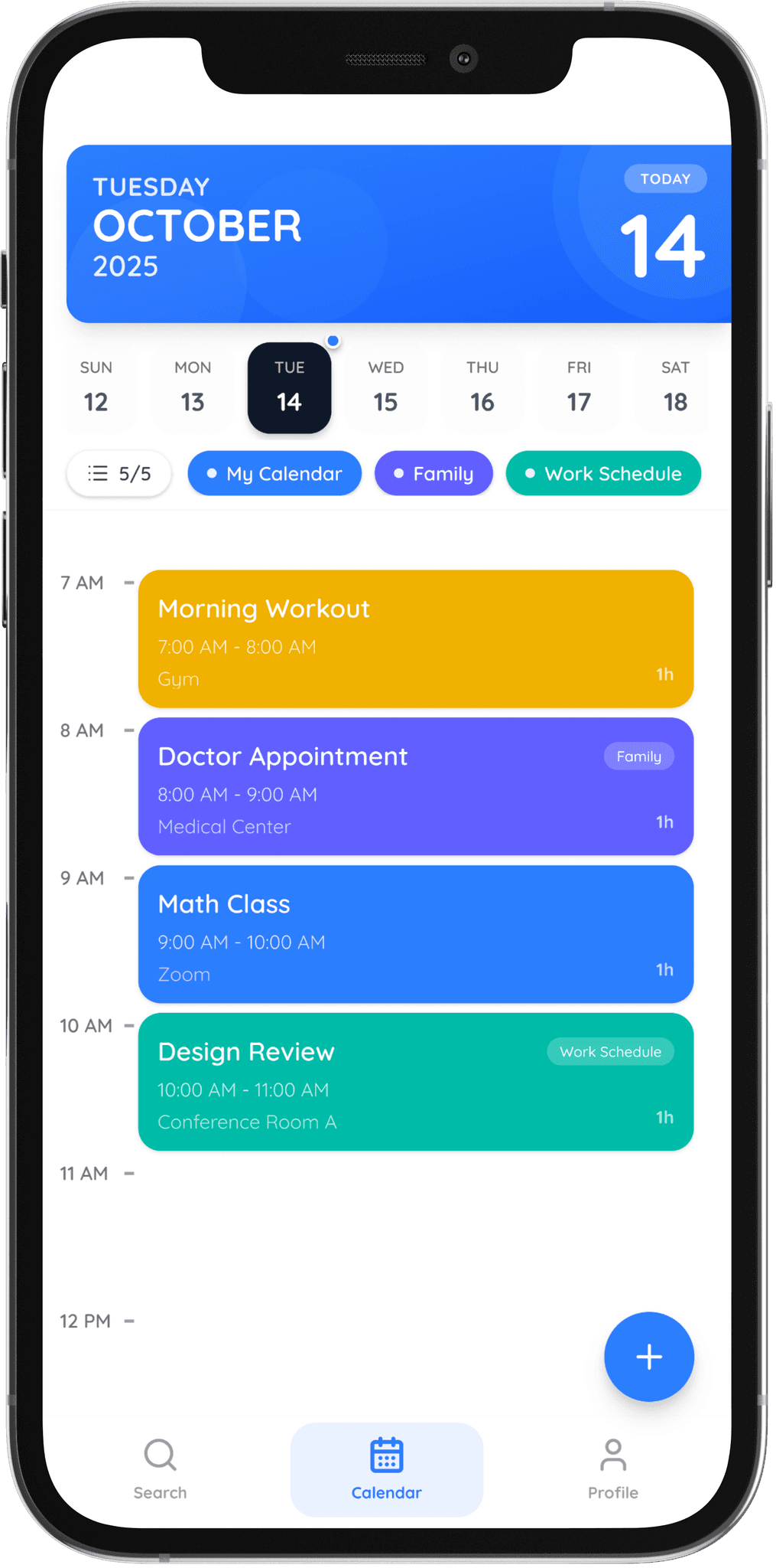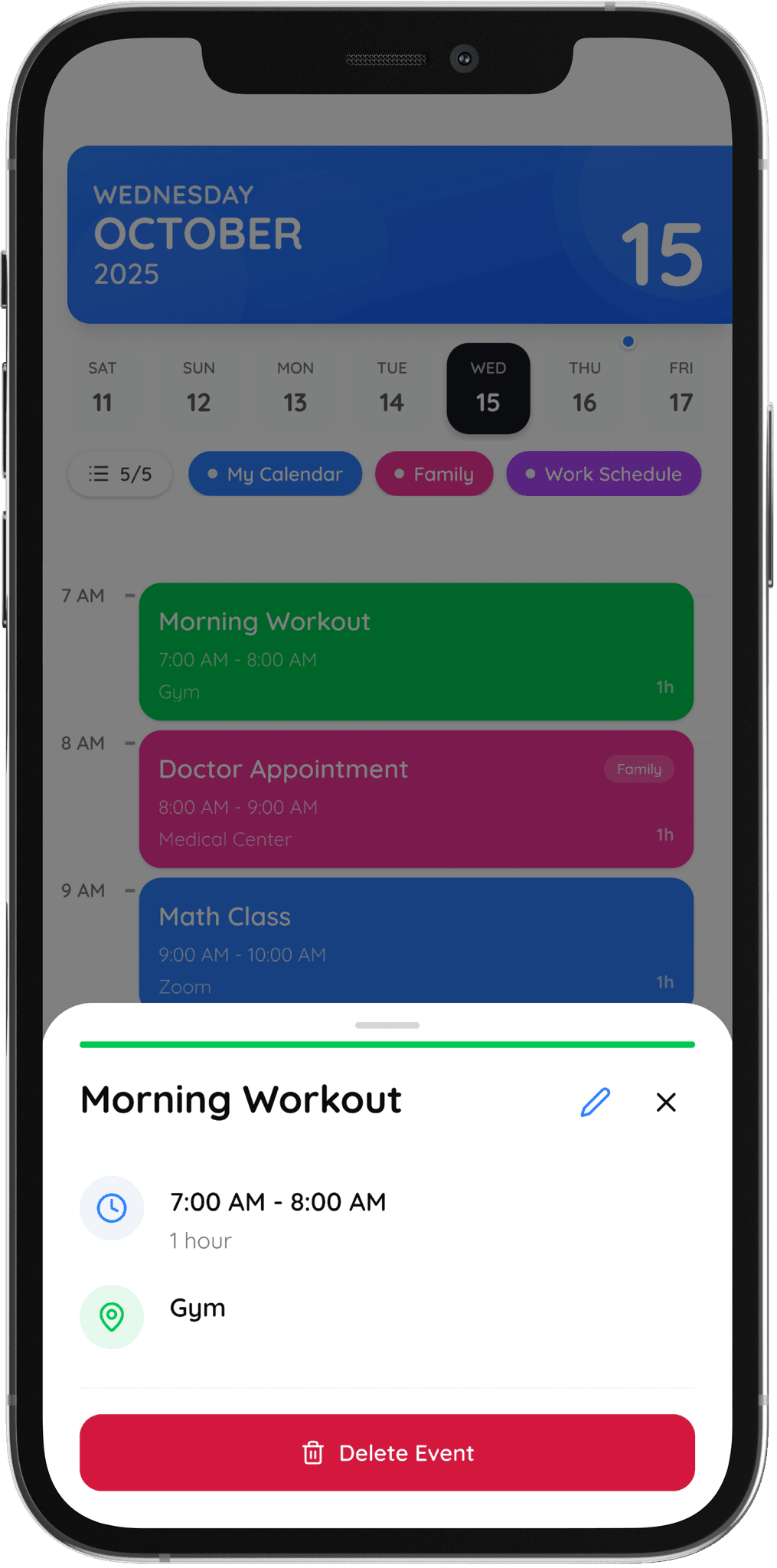 Personalize events with categories, icons, and colors that fit your schedule.