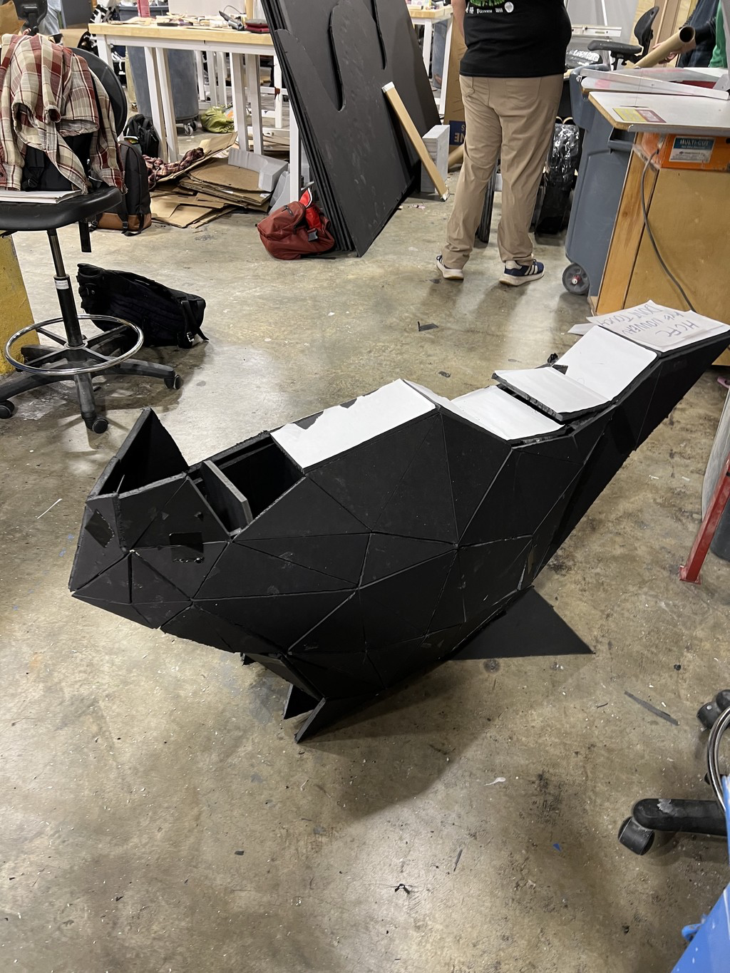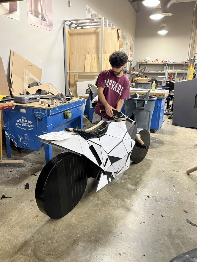 Working together, we built the motorcycle at full scale using foam, cardboard, and plexiglass. I helped cut and assemble panels, build the seat and a functional exhaust compartment with hidden storage, and tested the bike's usability as the rider. Throughout the build, I problem solved structural issues and adapted designs in real time, applying an iterative prototyping mindset similar to UX processes.